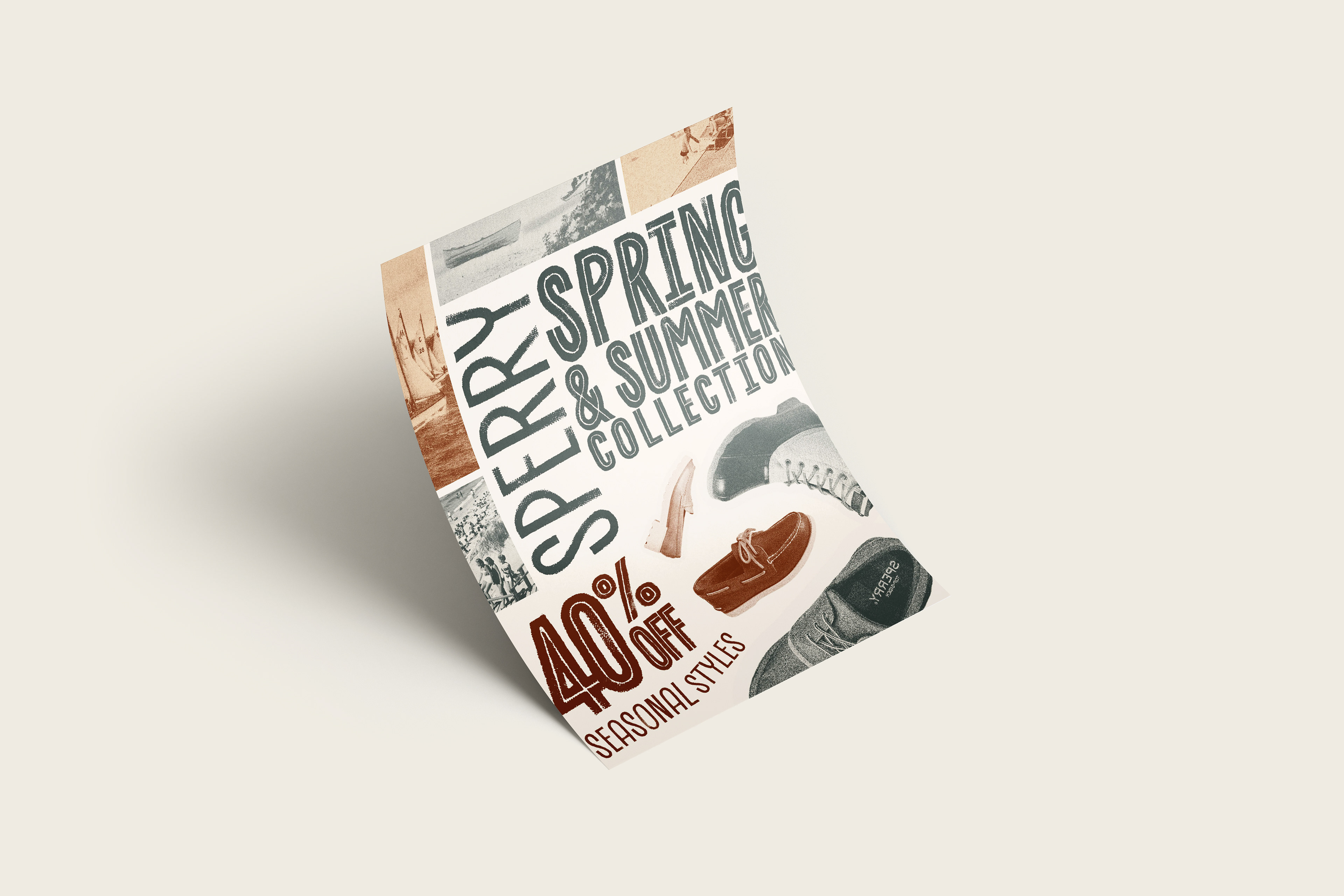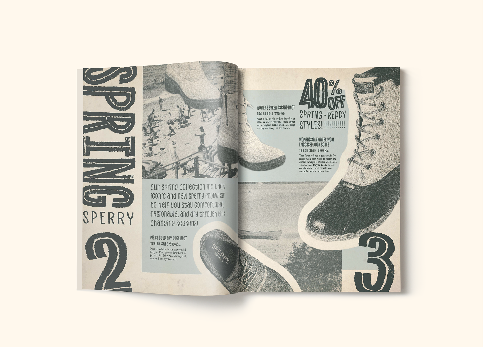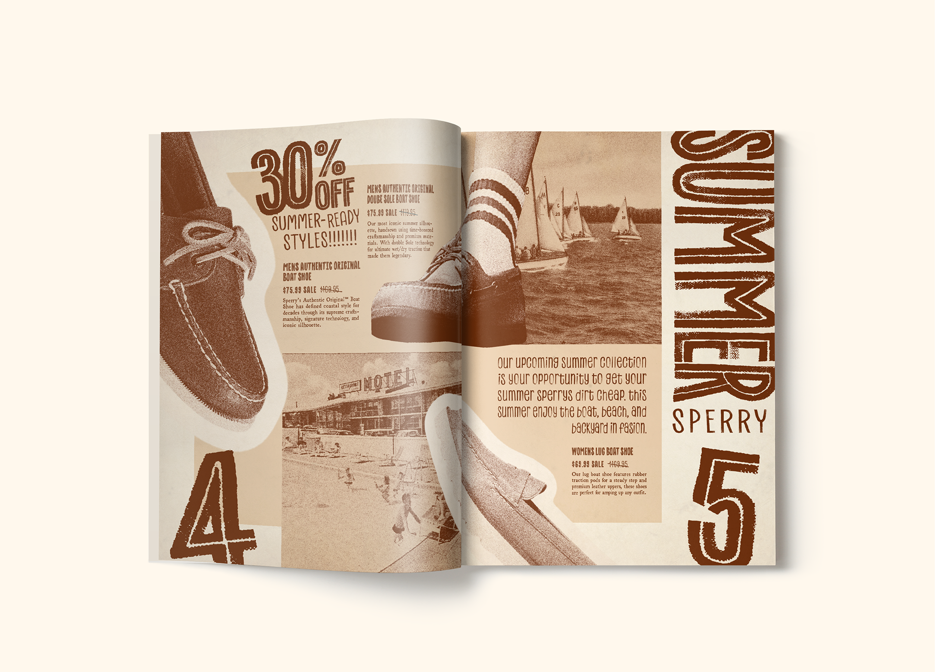 Design a six page promotional spread and cohesive promotional poster using an original design style that promote footwear for the upcoming spring and summer seasons.